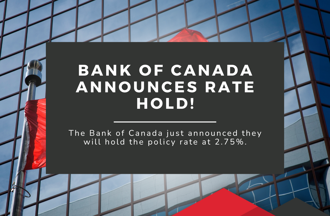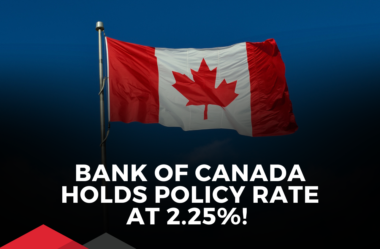 Bank of Canada announced today that they will maintain the policy rate at 2.25%!
